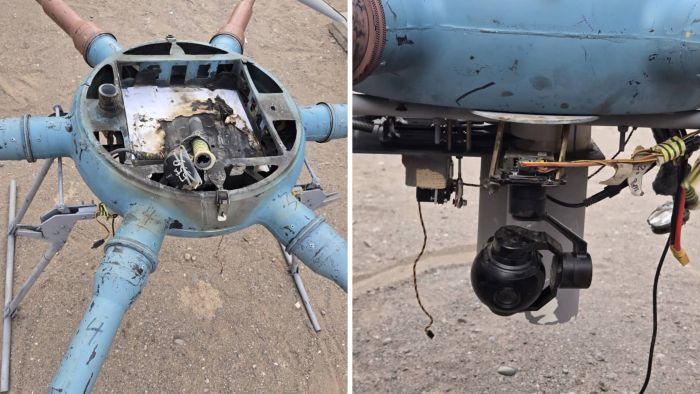 وبحسب الصورة التي نشرها الإعلام العسكري لحطام الطائرة تحمل قنابل وتم نقلها إلى الجهات المختصة بالمقاومة الوطنية لفحصها